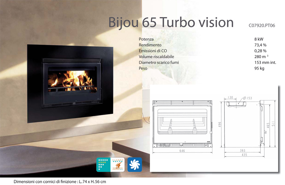 Particolarmente adatto per l'inserimento in camini esistenti con la bocca molto bassa.
