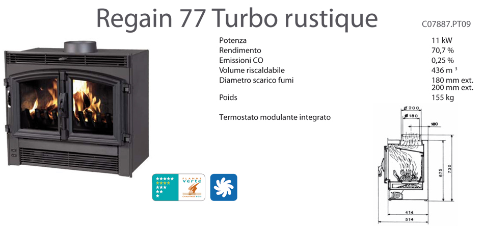 Inserto Turbo per camino di categoria 'C' a Fuoco Continuo (autonomia più di 10 ore).