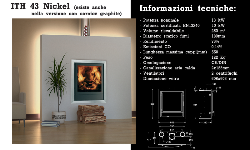 Telecomando termostatico programmabile opzionale. Il modello ITH 43 è fornito con cornice color graphite o nickel.